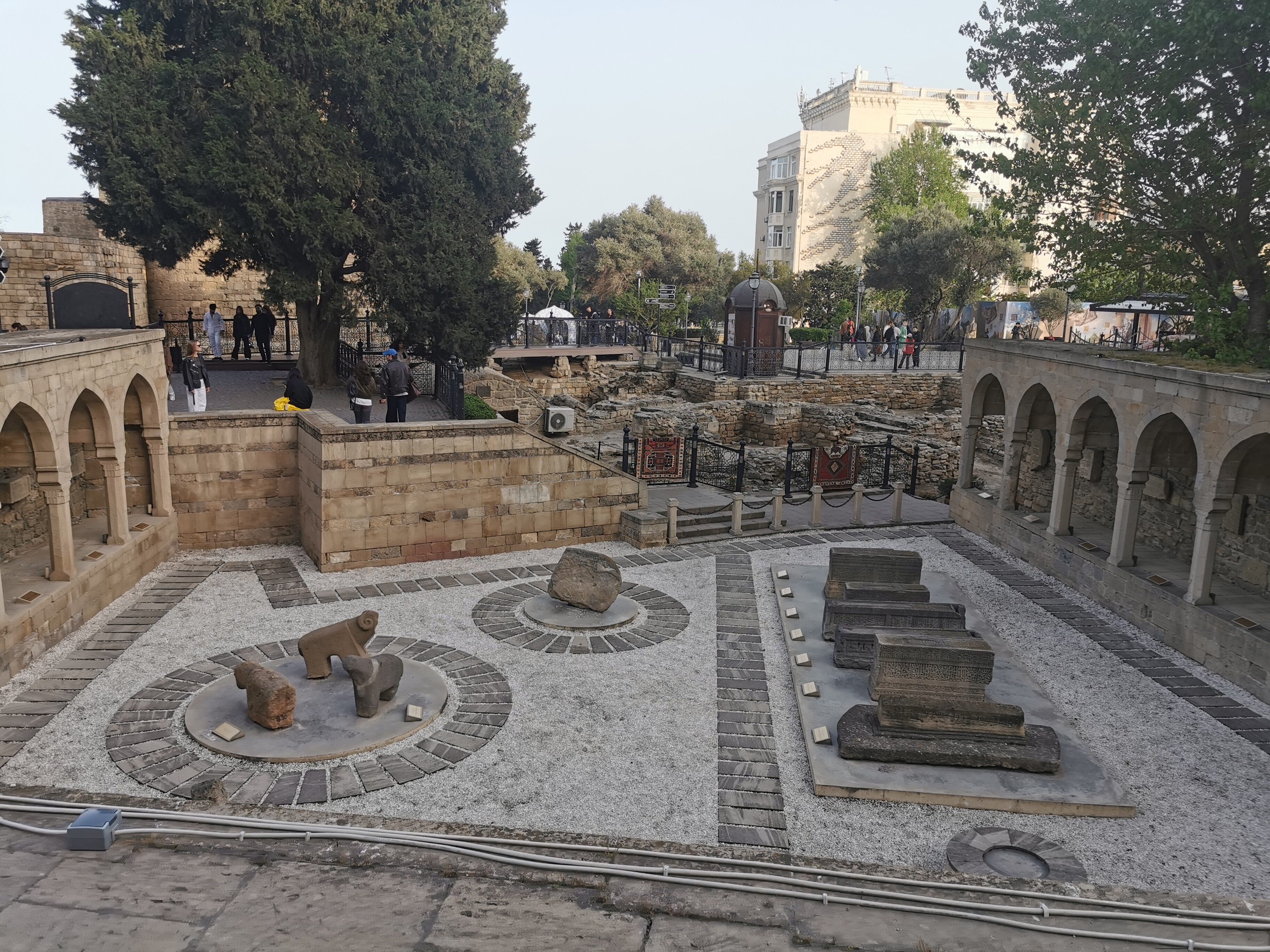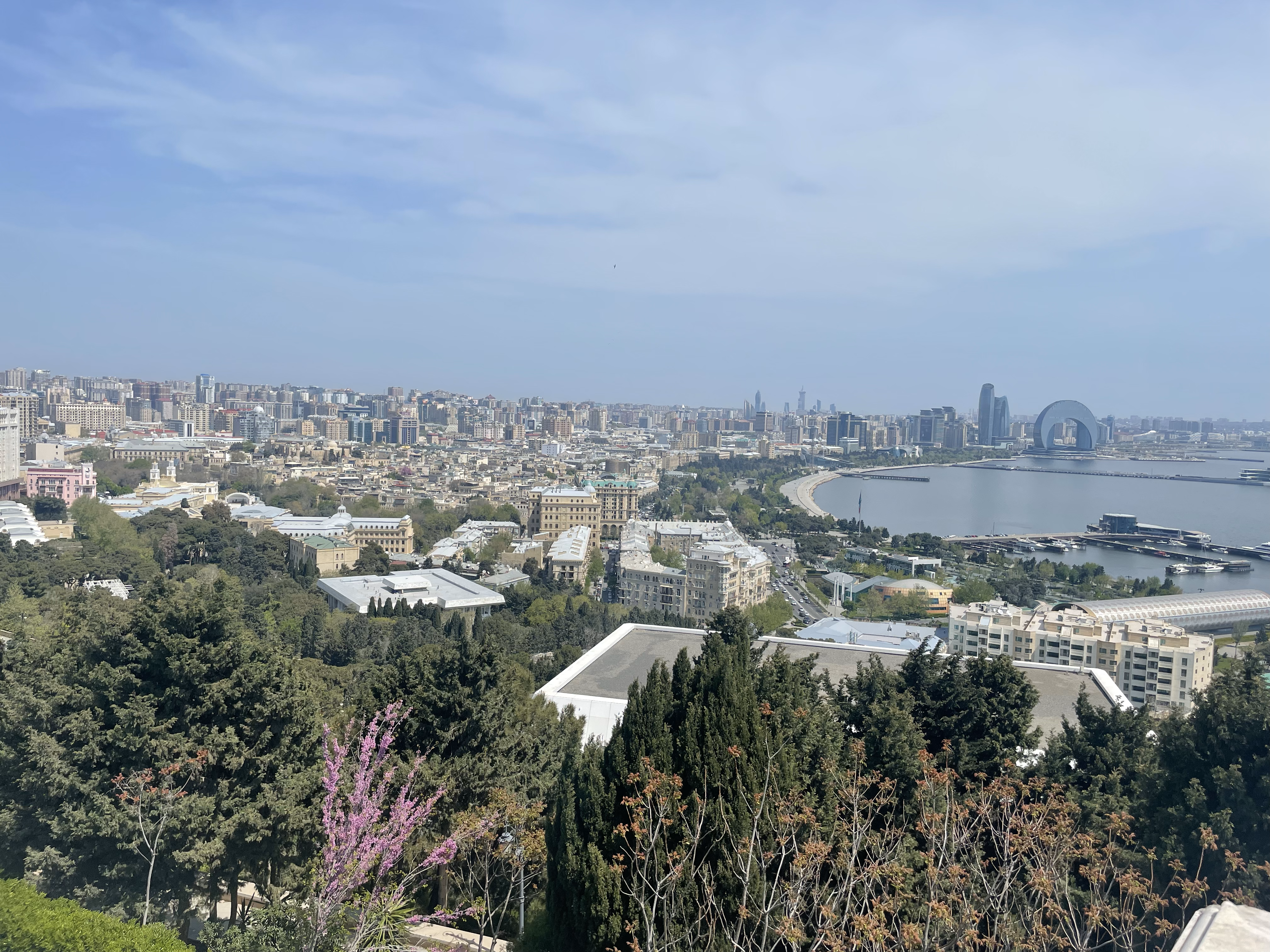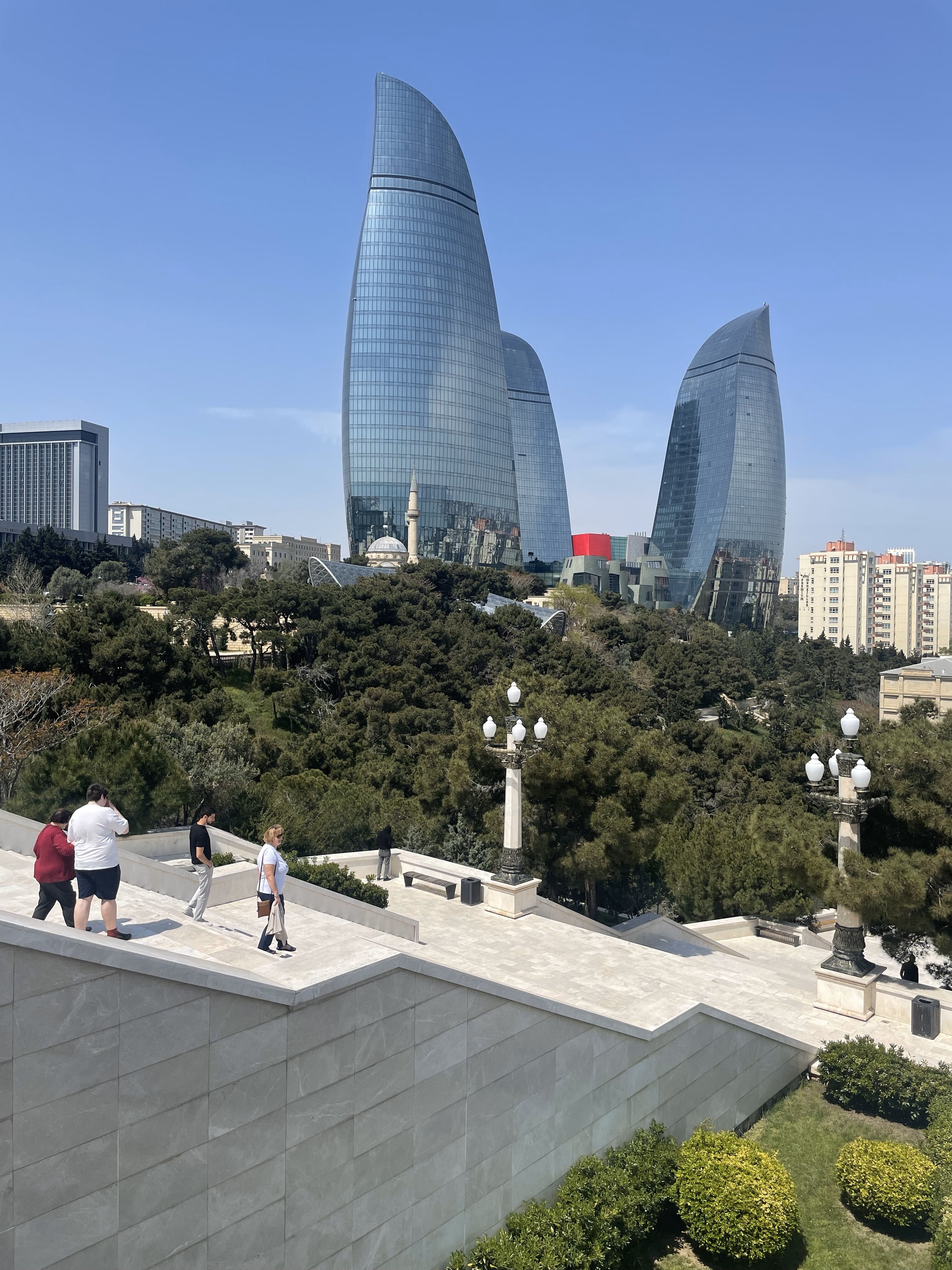 Spacerujemy nadmorskim bulwarem, mijając futurystyczny budynek Muzeum Dywanów, którego forma przypomina zwinięty dywan. Tuż obok zatrzymujemy się przy tzw. Małej Wenecji – miniaturowym kompleksie kanałów i mostków, gdzie można popłynąć gondolą w azerskim wydaniu. Następnie wjeżdżamy kolejką na Wzgórze Męczenników, skąd rozciąga się piękna panorama miasta i zatoki.