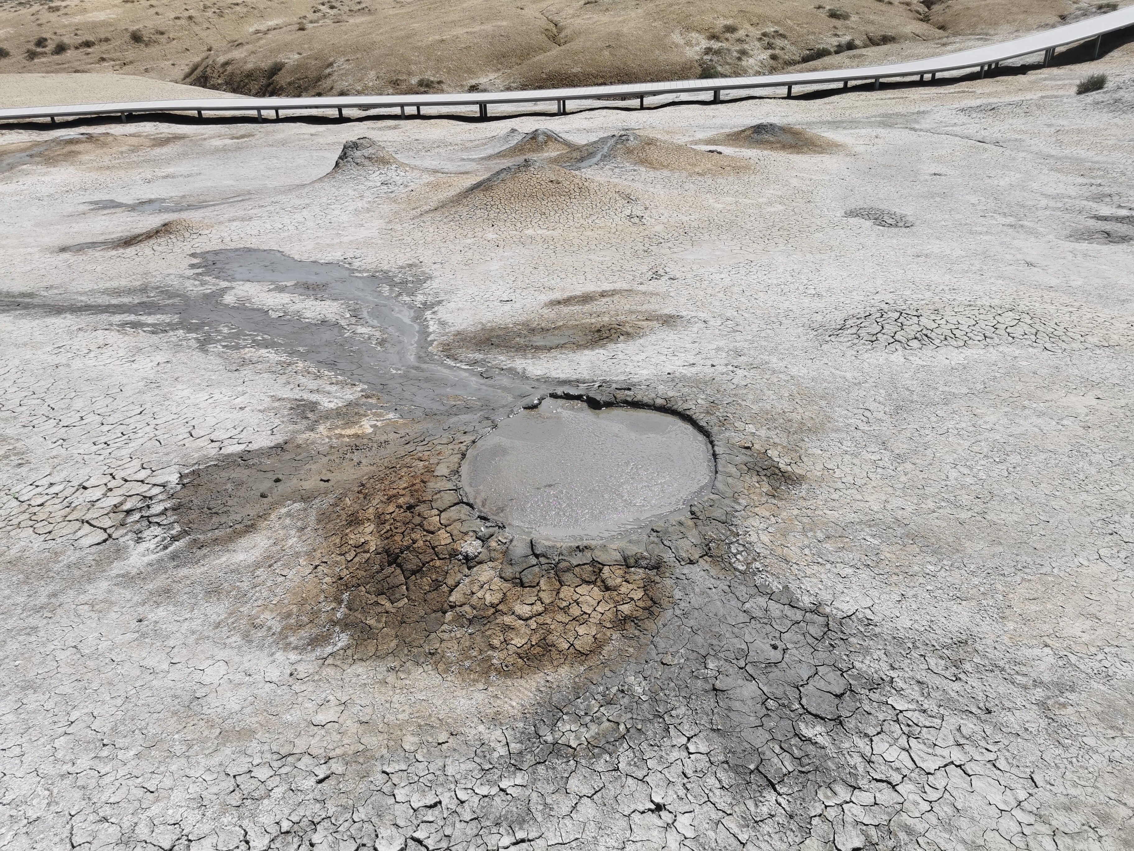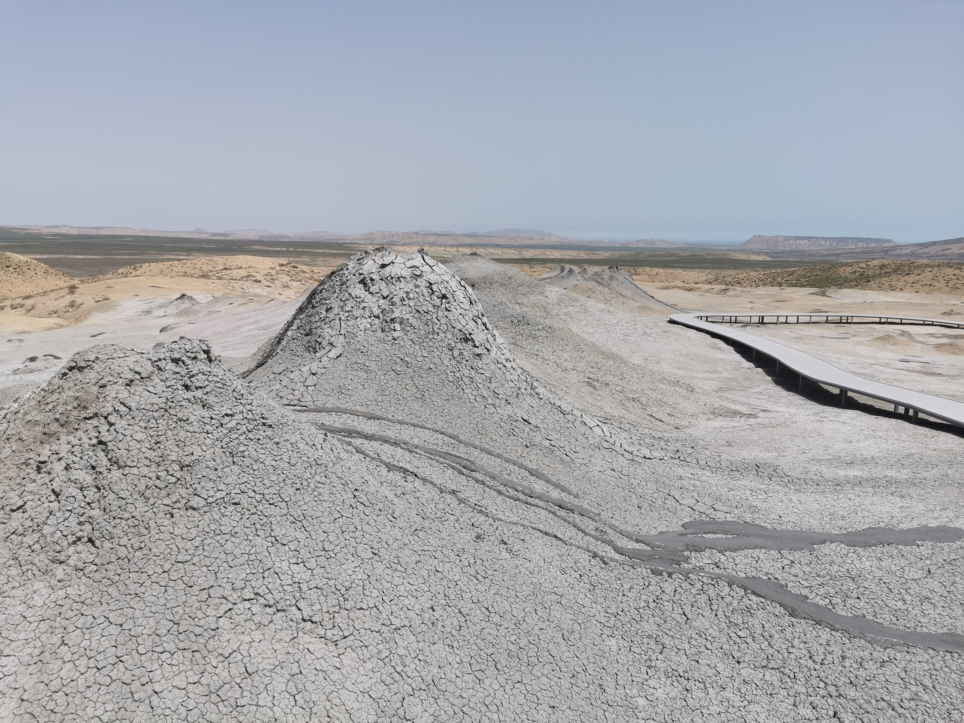 Centrum Wulkanów Błotnych – Qobustan Palçıq Vulkanları Mərkəzi – Rozczarowujące. Zwiedzanie trwa kilkanaście minut, kilka leniwych „wulkanów” o niewielkich rozmiarach, skromna ekspozycja geologiczna. Bilet: 15 AZN. Próba dotarcia do dzikiego wulkanu polecanego przez gospodarza nie powiodła się – teren ogrodzony, brama zamknięta łańcuchem i obłożona cegłami. Dodatkowo, przy wjeździe – policjant. Miejscowy taksówkarz oferował przejazd do alternatywnych wulkanów – dziś skorzystalibyśmy bez wahania- zamiast wizyty w oficjalnym Centrum.