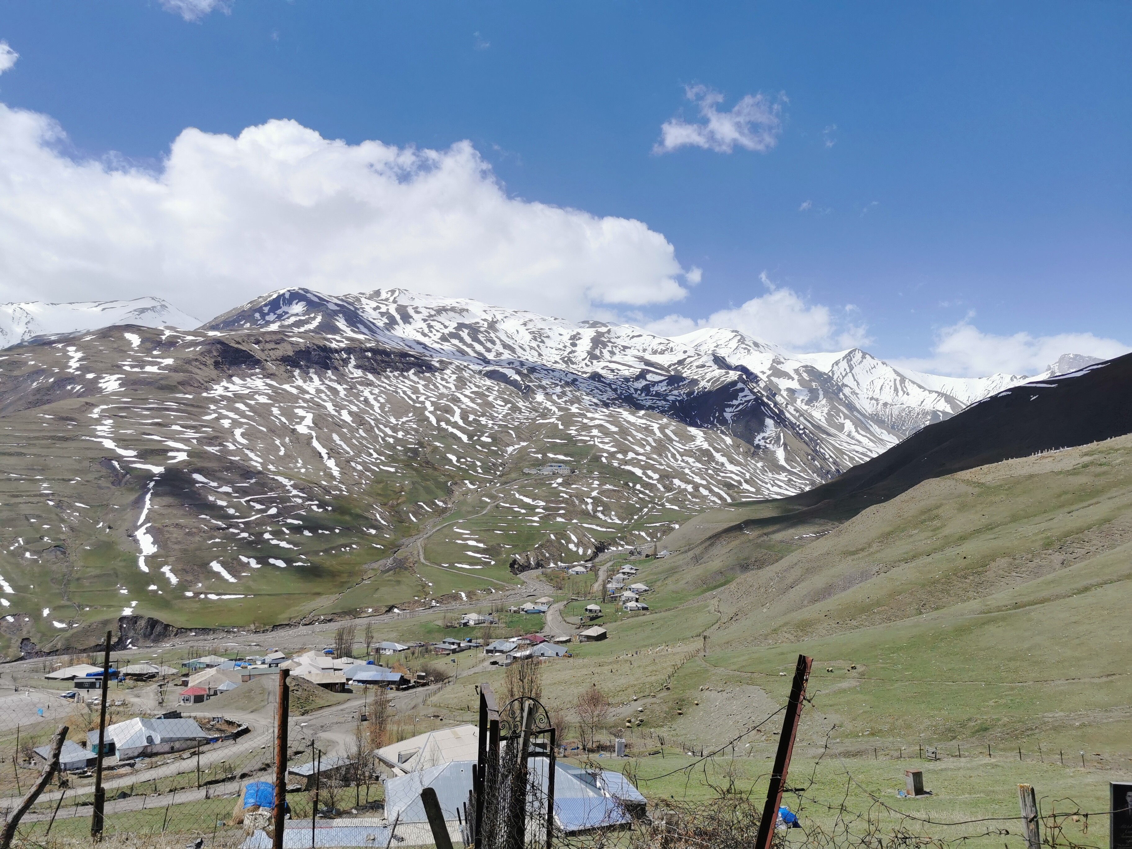 Przejazd do Xınalıq – obowiązkowy punkt programu. Spektakularne widoki na Kaukaz. W kwietniu miejscami zalegał śnieg. W jednym miejscu droga zerwana – konieczny objazd szutrowy, ale w dobrym stanie. Z Quby można dojechać na dwa sposoby: przez Qırızdəhnə, (początek trasy: Quba–Qəçrəş yolu) lub z Quby pojechać kilka kilometrów w stronę Qusaru i odbić na drogę do Susay (początek trasy: Quba–Susay Way). Nasza nawigacja poprowadziła drugą opcją – jechaliśmy wyłącznie nią.