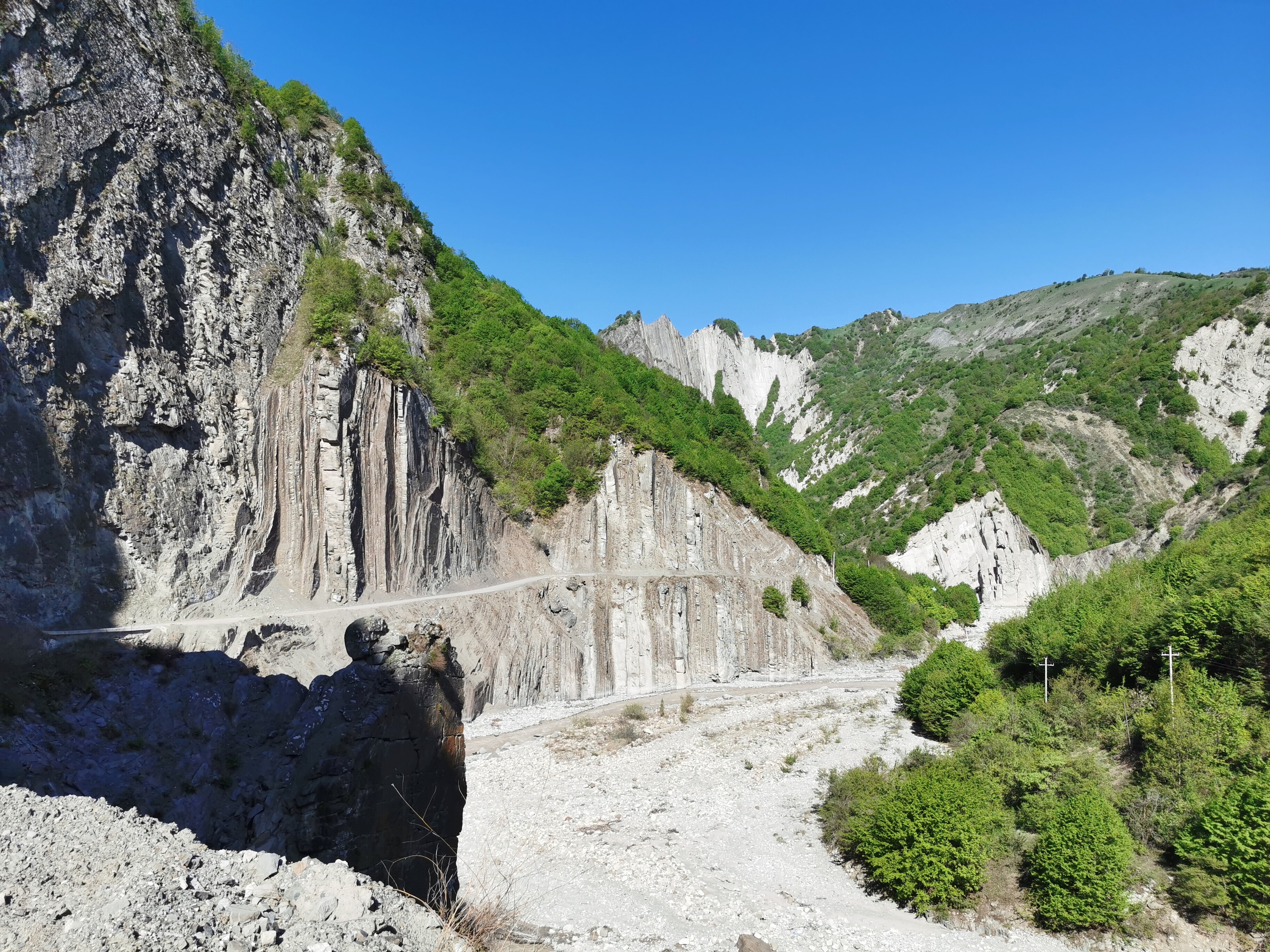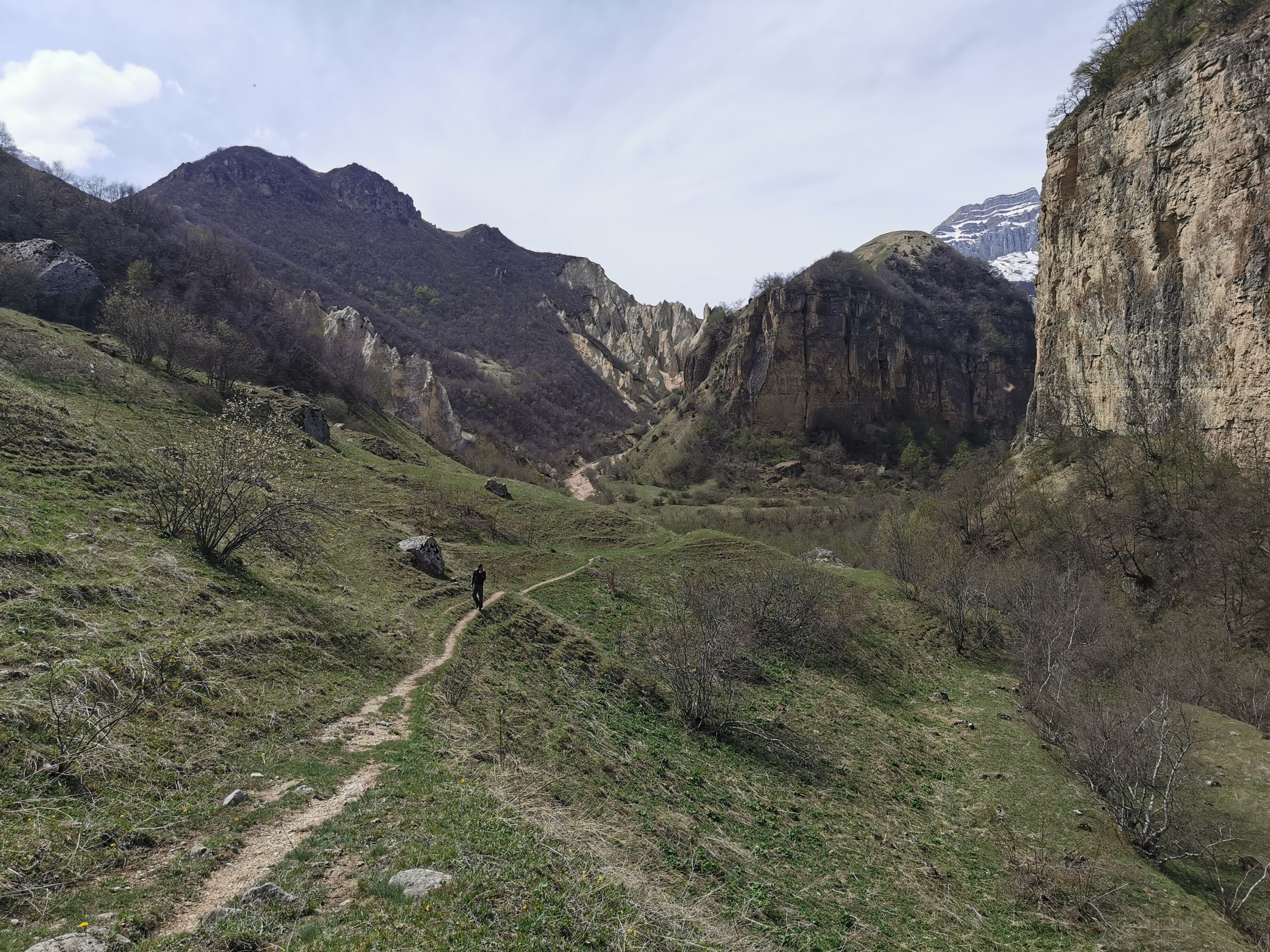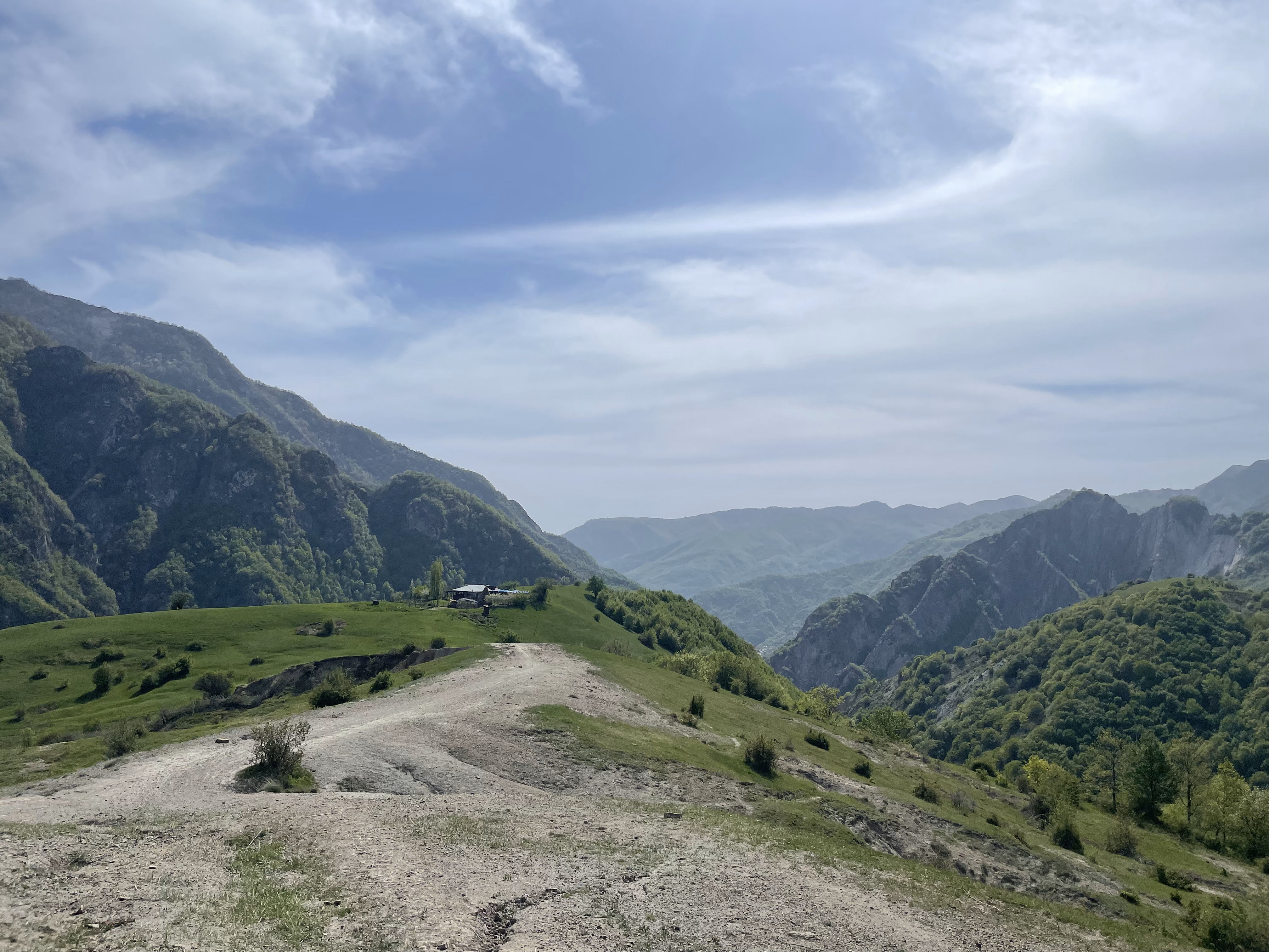 Trekking do wioski Müdri – spokojna trasa szutrową drogą. Z najwyższego punktu widokowego cudowny widok na ośnieżony Kaukaz i szczyt Babadag (3629 m). Na mapie była opcja powrotu inną trasą, w praktyce okazało się, że ścieżka w jednym miejscu o długości kilkudziesięciu może kilkuset metrów całkowicie zaniknęła – osuwiska, zwalone drzewa, kolczaste krzewy. Udało się przedrzeć poza szlakiem i znaleźć trasę czyli ścieżkę wydeptaną przez owce i inne kopytne. Pomimo pięknych widoków, na trasie nie spotkaliśmy nikogo.