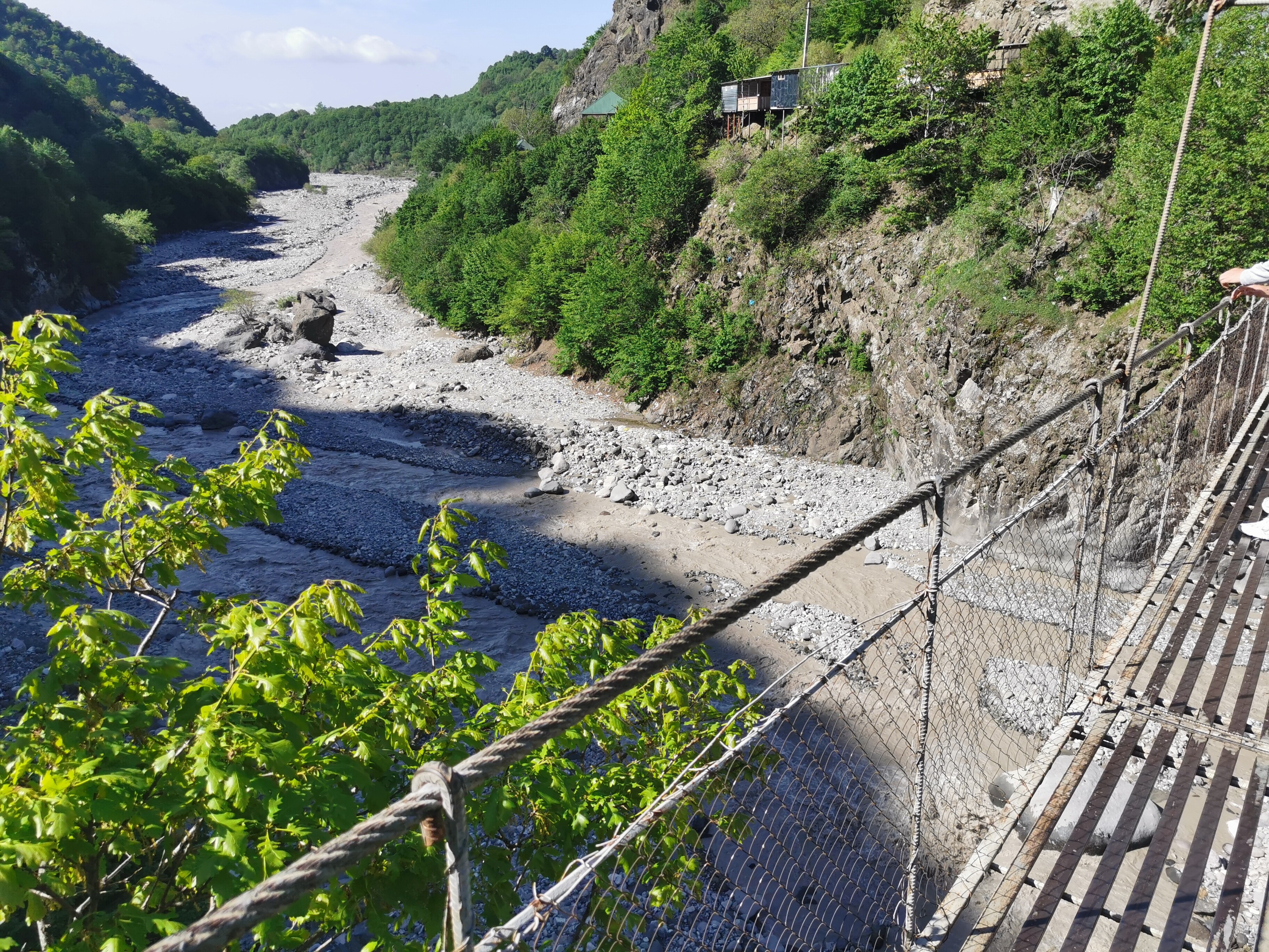 Wiszący metalowy most – cóż, trzeba wykazać się zaufaniem do azerskiej myśli inżynieryjnej. Budzi dreszczyk emocji, ale wytrzymuje nawet próby rozbujania, które niestety, bawiły wyłącznie męską część naszej dwuosobowej grupy. Wejście: 1 AZN. Obok herbata i pamiątki.